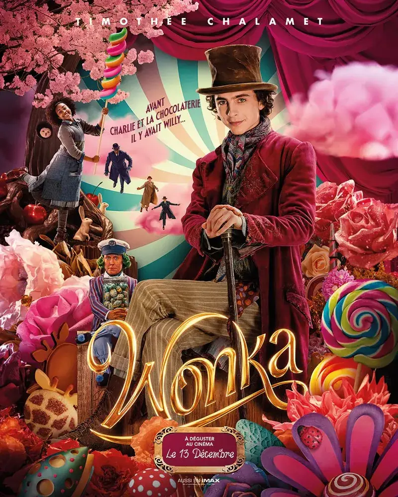 Nous retrouvons Willy Wonka dans le préquel de Charlie et la Chocolaterie. Chalamet excelle dans le rôle de Willy tout comme son aîné Johnny Depp dix-huit ans plus tôt. Ce film est d'un esthétisme onirique menant le spectateur à ressentir de nouveau les vibrations de son cœur d'enfant. Le réalisateur nous plonge dans les réminiscences de nos jeunes années bercées notamment par Mary Poppins. L'actrice Coleman en impose dans son rôle de tenancière d'hôtel machiavélique et acariâtre. Paul King expose avec clarté les origines de l'univers de Willy et son lien singulier avec un Oompa Loompa, créature qui deviendra par la suite la clé de voûte des industries Wonka. Hugh Grant nous surprend dans ce rôle burlesque qu'il épouse à la perfection. En définitive, cette comédie musicale au coeur tendre chocolaté est une brise de fraîcheur, un appel au voyage.
